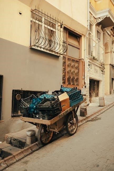 When maneuvering the cart‚ particularly with a full load‚ maintain a controlled pace and avoid sharp turns. Regularly inspect the wheels and frame for any signs of wear or damage‚ addressing issues promptly to maintain safe operation.
